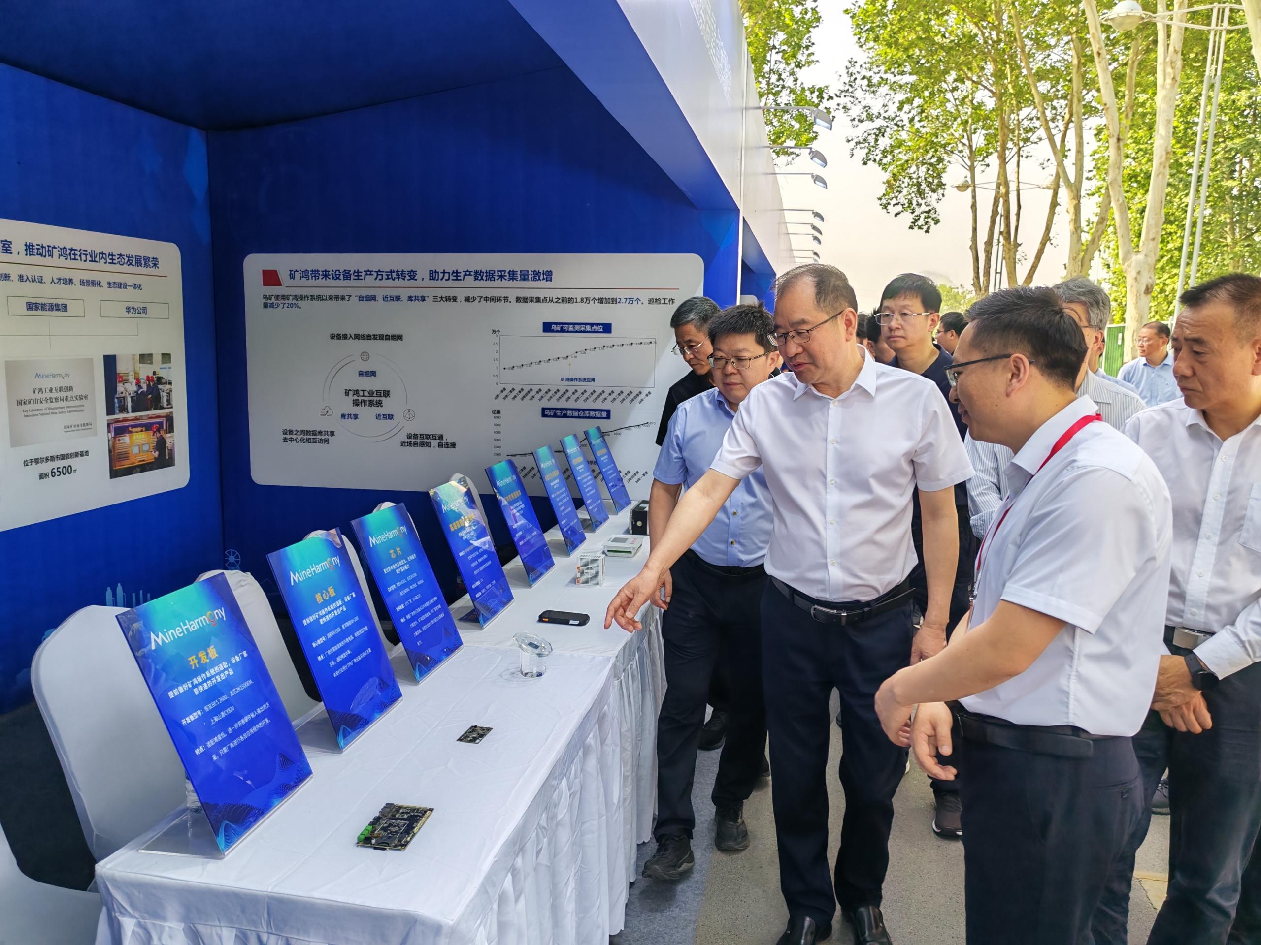 5月20日上午,国家矿山安全监察局党组成员、副局长周德昶及参会代表参观了实验室展位,矿鸿实验室工作人员现场介绍了实验室基本情况、矿鸿操作系统研发进展及成果。矿鸿操作系统作为国产工业级操作系统,为解决矿山设备自主可控、智能互联提供了可行路径,周德昶副局长对实验室的研究成果予以肯定,鼓励实验室坚定不移的发展新质生产力,为矿山领域智能化信息化建设做出贡献。
